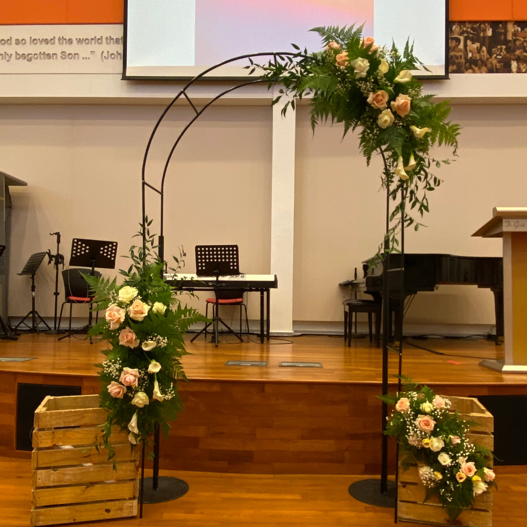 Make a grand entrance with our enchanting floral arches. These stunning structures, adorned with an abundance of vibrant blooms and lush greenery, create a breathtaking focal point for your wedding ceremony or event, adding romance and elegance to your special day.