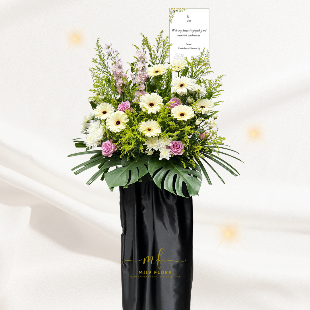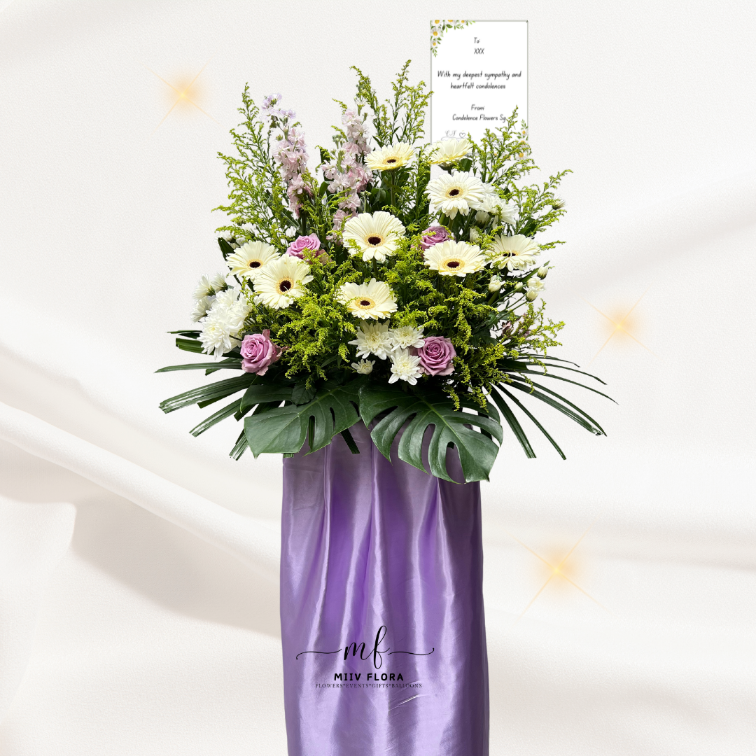 Beautifully Designed w Black/White/Pale Purple Satin Stand