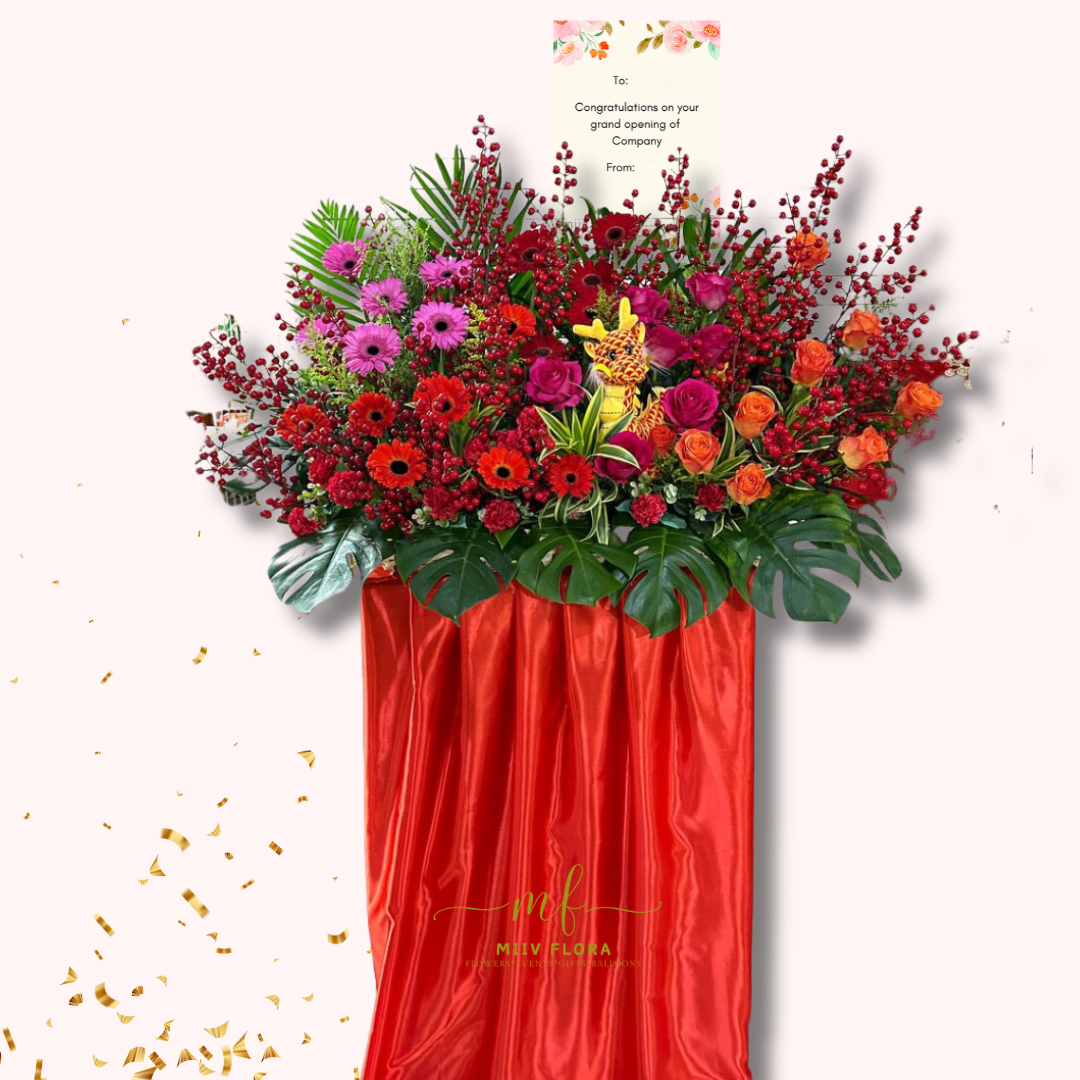 Beautifully Designed w Red/Purple Satin Stand