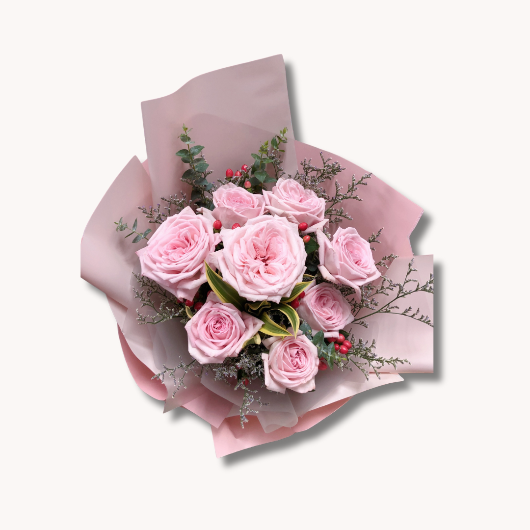 An enchanting rose bouquet, a captivating symphony of velvety blooms that embodies romance and elegance, perfect for expressing love, admiration, or appreciation on any occasion.